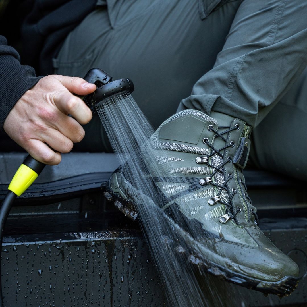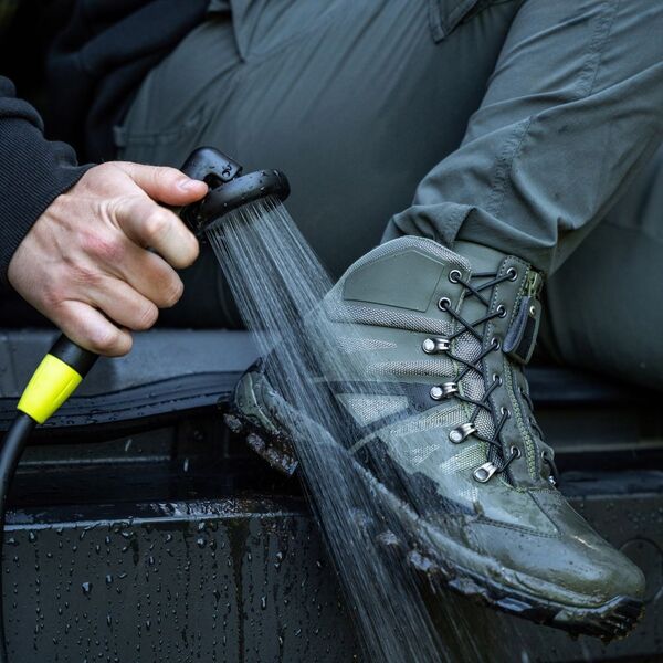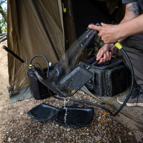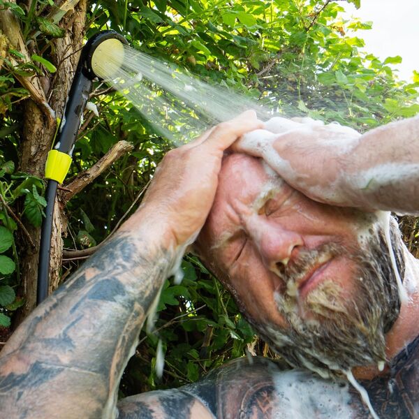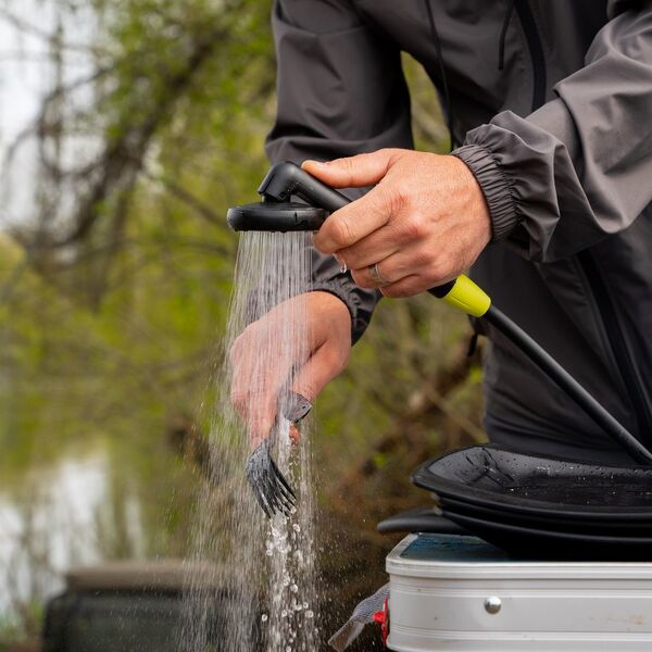 - Мгновенно превращает Прочную Канистру для Воды «Ridge Monkey» в мощный походный душ