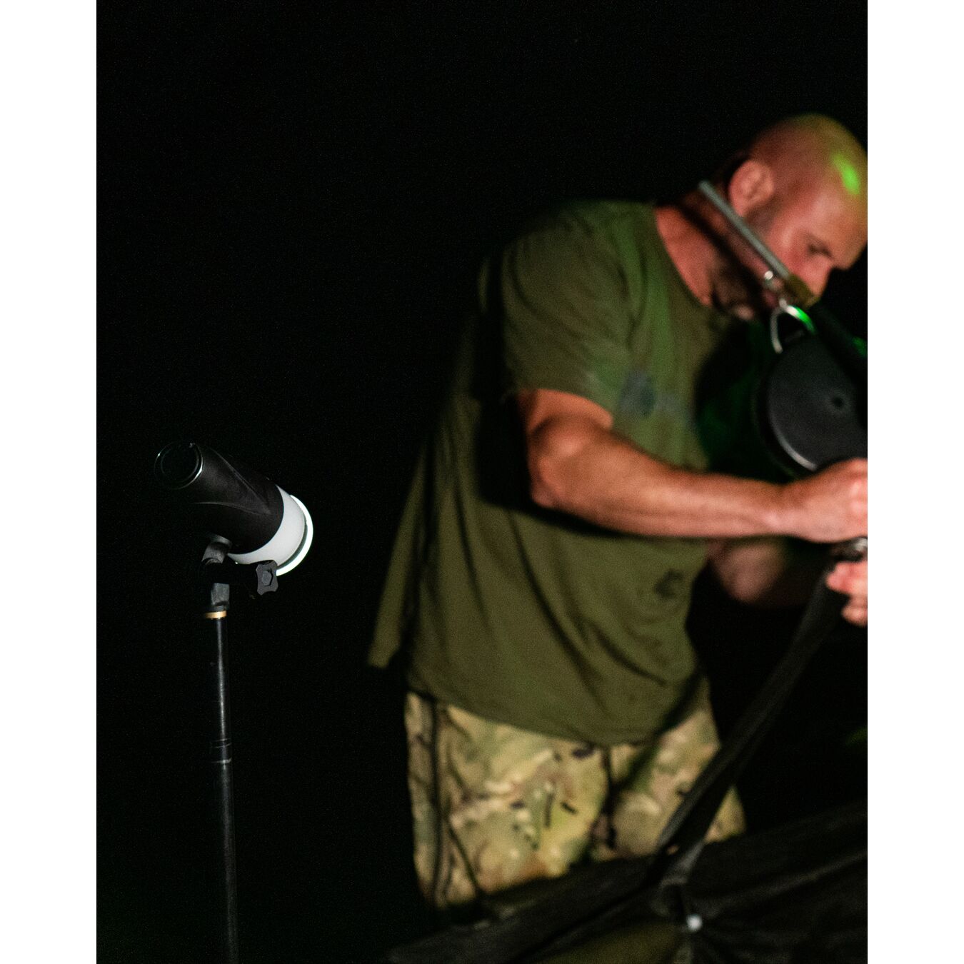 Ridge Monkey Multi Lite Plus - может использоваться в качестве мощного прожектора или трехцветного (красный, белый и зеленый) фонаря с изменяемым уровнем яркости. Данный фонарь комплектуется съемным рассеивателем света и универсальным креплением к штативу с регулируемым адаптером для использования стоек, что позволит Вам существенно улучшить качество ночных снимков.