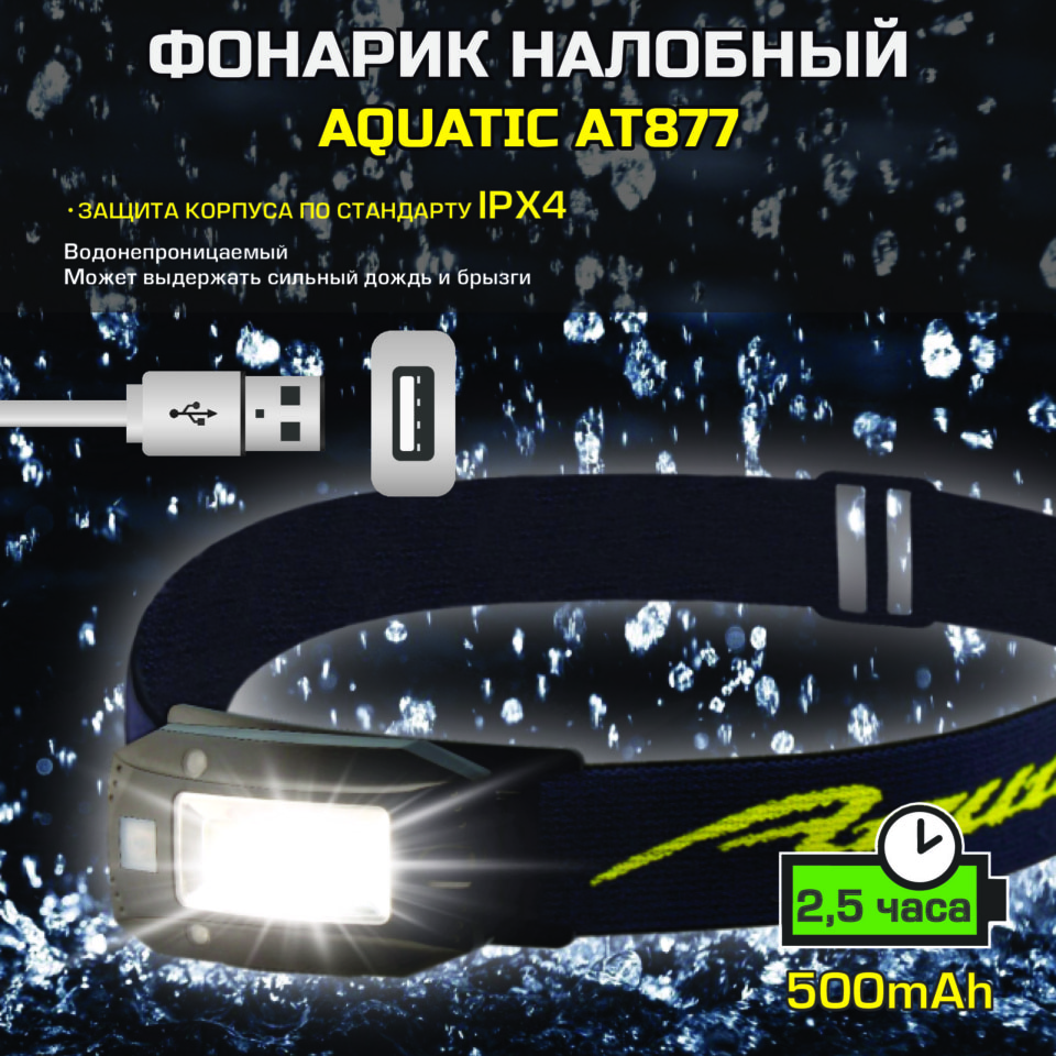 Налобный фонарик с датчиком движения Aquatic AT877