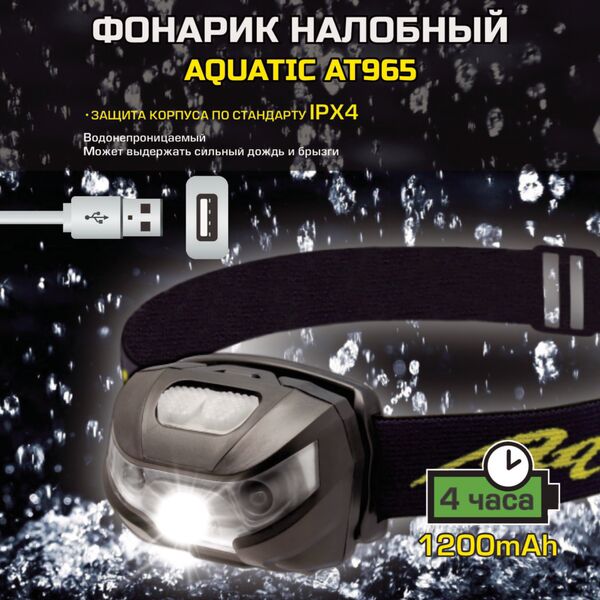 Налобный фонарик с датчиком движения Aquatic AT965.