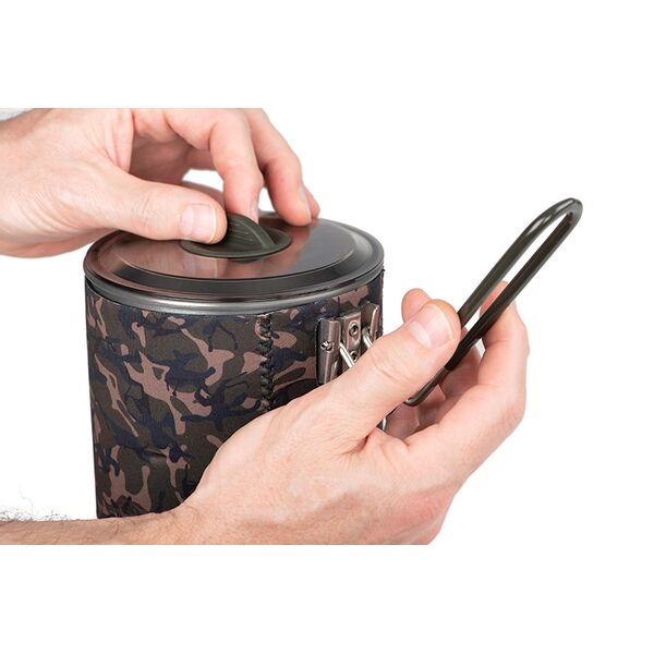 - Неопреновый чехол FOX Camo, который можно не снимать во время использования, улучшает теплоизоляцию.
