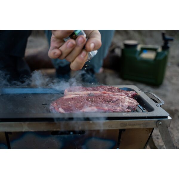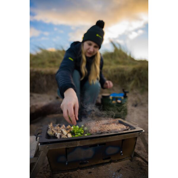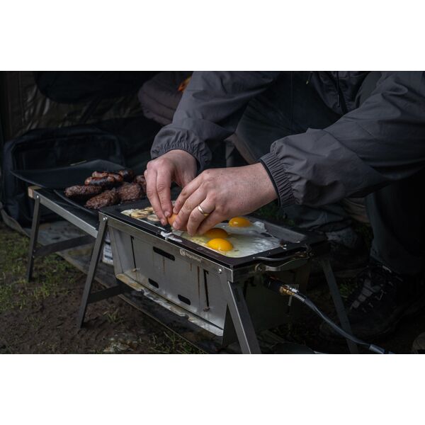 Протвень для приготовления на комплексе RidgeMonkey Grilla BBQ Hotplate - дает вам превосходную возможность приготовить больше кулинарных изысков, чем когда бы то ни было прежде. Это поверхность превращает наш мангал для барбекю «Grilla BBQ» в плоскую жарочную поверхность с рифленой секцией для гриля/барбекю, что позволяет вам получить настоящий кайф от приготовления вкусной пищи на свежем воздухе! Прочная конструкция из кованого железа в сочетании с нашим хорошо зарекомендовавшим себя фторполимерным антипригарным покрытием гарантирует, что Жарочная Поверхность «Grilla BBQ» справится со всеми трудностями в условиях приготовления еды на открытом воздухе. Разбитая на две секции (плоская и рифленая для гриля) поверхность обеспечивает универсальность в приготовлении самых разнообразных блюд. Преимущество равномерного распределения тепла по всей Жарочной Поверхности упрощает процесс приготовления пищи, устраняя излишне нагреваемые участки и подгорание пищи, что часто происходит при готовке на мангалах и барбекю с открытым огнем. Удобная и легкая в очистке Жарочная Поверхность позволяет использовать самые разнообразные ингредиенты, которые зачастую невозможно использовать при готовке на обычном мангале или барбекю.