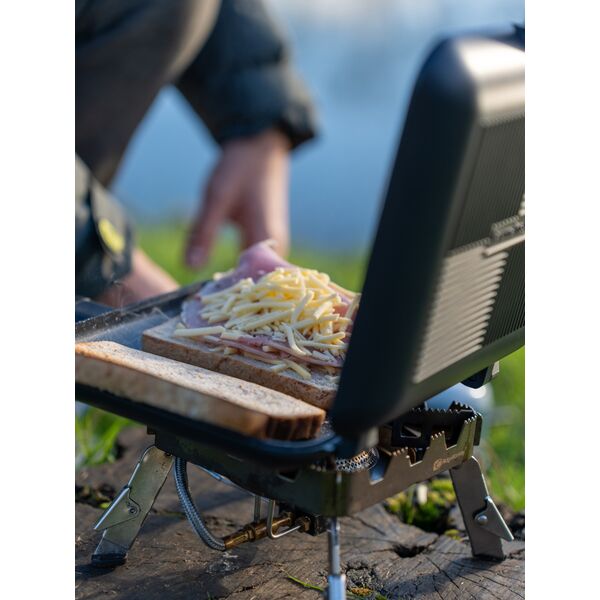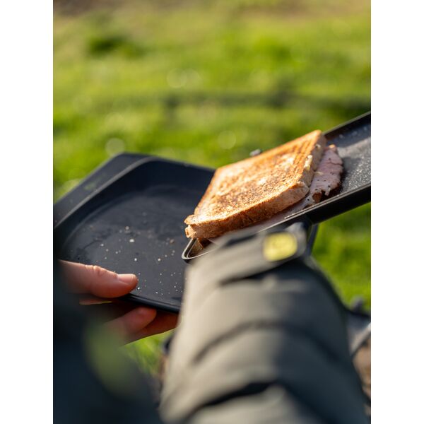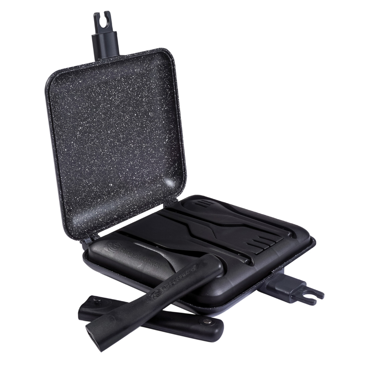 Тостер с кухонными принадлежностями RidgeMonkey Connect Sandwich Toaster XL 10th Anniversary Limited - включает в себя несколько новых полезных дополнений в честь достижения этой знаменательной, даже эпохальной даты! Сам тостер имеет ту же самую систему съемных шарниров и съемные, не нагревающиеся ручки, которые компактно упаковываются внутри прилагаемого набора из 4 столовых предметов. Сам набор аккуратно помещается внутри тостера между сковород с антипригарным покрытием специальной гранитной серии «Granite Edition».