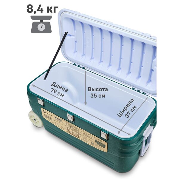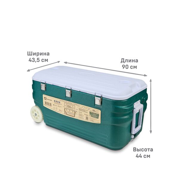 Изотермический контейнер Арктика 100л (Аквамарин) - Термоконтейнер сохранит свежесть овощей и мяса, прохладу напитков в жаркий летний день на даче или по дороге за город, а также послужит походным холодильником на рыбалке и поможет довести улов до дома. Двойная стенка из прочного пластика и прослойка из пенополиуретана позволяют сохранять холод до 149 часов*. Наши контейнеры имеют жесткую, надежную конструкцию и ударопрочный корпус, так что их можно использовать как стол и даже сидеть на них. Герметичная конструкция защитит от посторонних запахов, внутри термоконтейнер легко мыть после использования. Оснащен фиксирующим ремнем, который удерживает крышку в открытом состоянии. Встроенный слив решит проблему избытка конденсата. Контейнер оборудован прочной складной ручкой, крепкими металлическими замками, фиксирующим ремнем, который надежно держит крышку при открытии. Встроенный слив решит проблему избытка конденсата. Рекомендуется использовать вместе с аккумуляторами холода серии АТМ из расчета не менее 10% от объема термоконтейнера.