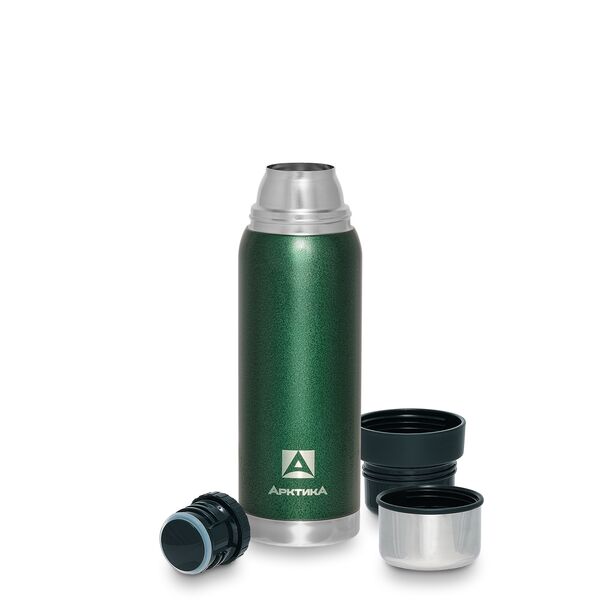 Термос вакуумный для напитков Арктика 750мл (Зеленый) - Этот надёжный термос для напитков с антивандальным покрытием из молотковой эмали станет лучшим другом в любом, даже самом «морозном» приключении. Термос имеет улучшенные показатели удержания тепла и был успешно испытан в суровых условиях арктических экспедиций. Выполнен из долговечной пищевой нержавеющей стали. Благодаря оптимальной конструкции крышка термоса плотно прилегает к горлышку, обеспечивая 100% герметичности. Удобные каналы для налива на пробке позволяют безопасно наливать напиток в крышку-чашку без расплёскивания. В комплекте 2 чашки, которые можно использовать по отдельности или собрать в одну. Проверено не одним путешествием: эта модель идеально подойдет для любителей походов, рыбалки и охоты. Серия представлена 5 цветами на выбор. Гарантия на вакуум – 5 лет.