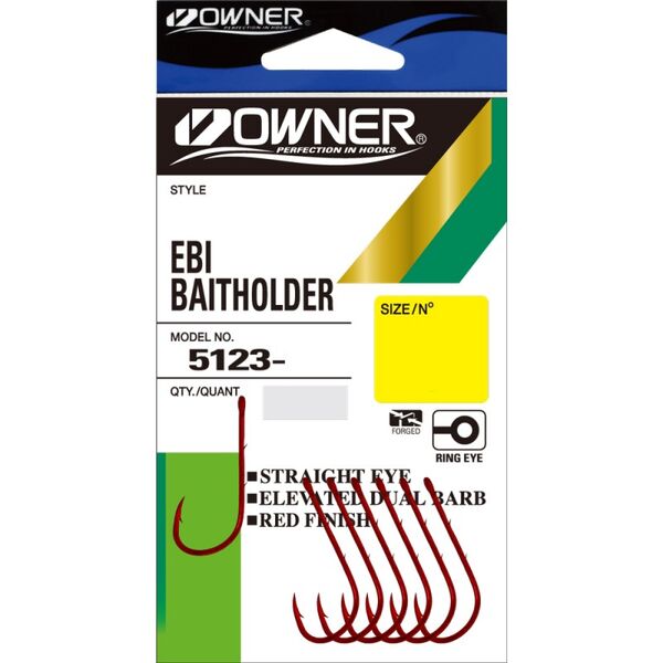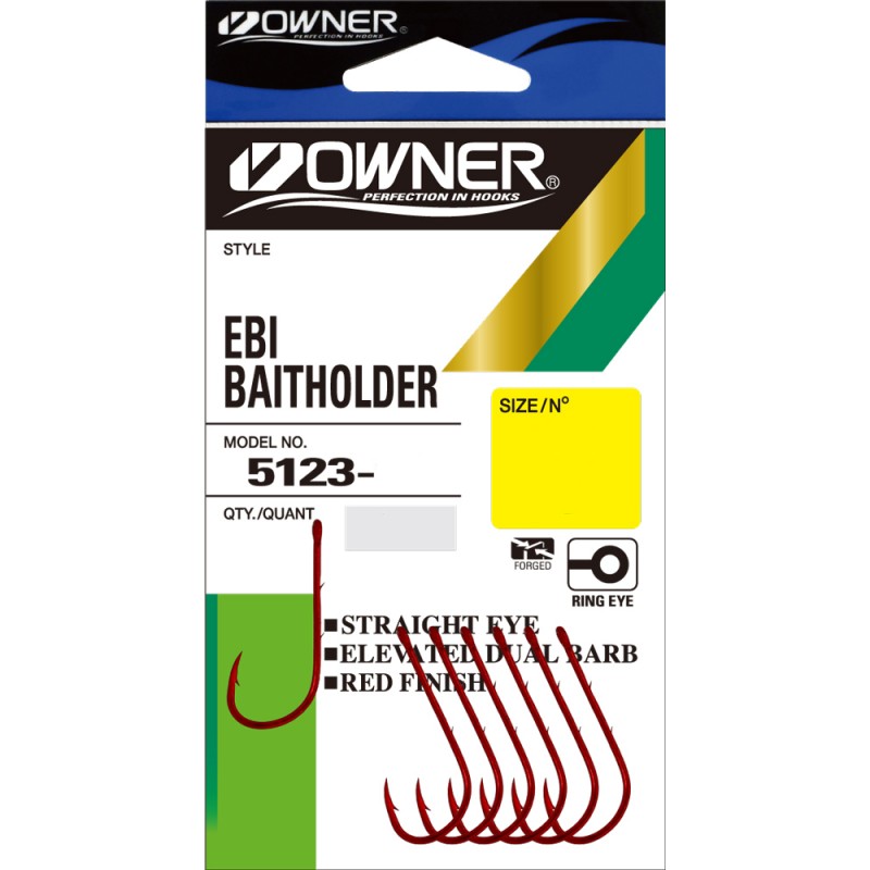 Крючки OWNER Ebi Baitholder Red - использована высококачественная стальная проволока, прошедшая специальную термическую обработку, которая придает им еще больше прочности. Форма загиба и заточка обеспечивают отличную подсечку. Еще одно преимущество этой серии - круглое колечко большого диаметра, которое значительно упрощает монтаж. Так же, крючки отлично подойдут для монтажей, используемых в фидерной и поплавочной ловле. Насечки на цевье предназначены для дополнительного удержания животных наживок. Используются для ловли крупной рыбы.