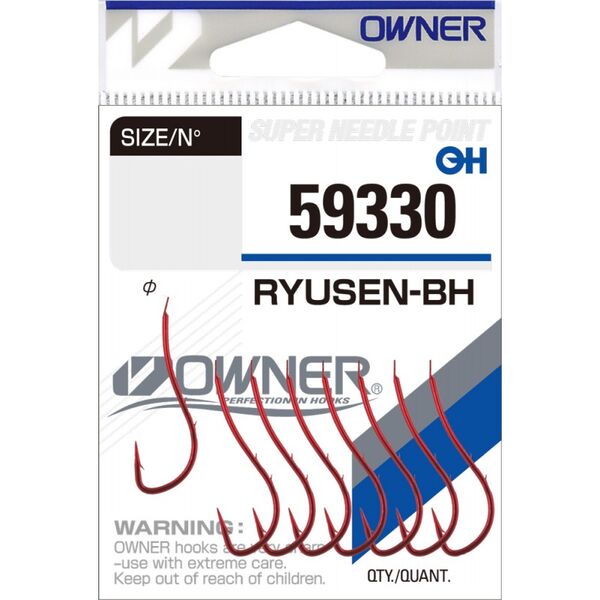 Крючки OWNER Ryusen BH Red — характеризуются круглым загибом, удлиненным, слегка изогнутым внутрь цевьем и двумя дополнительными бородками на нем. Идеально подходят для насаживания приманок животного происхождения, особенно хороши при использовании пучка опарышей.