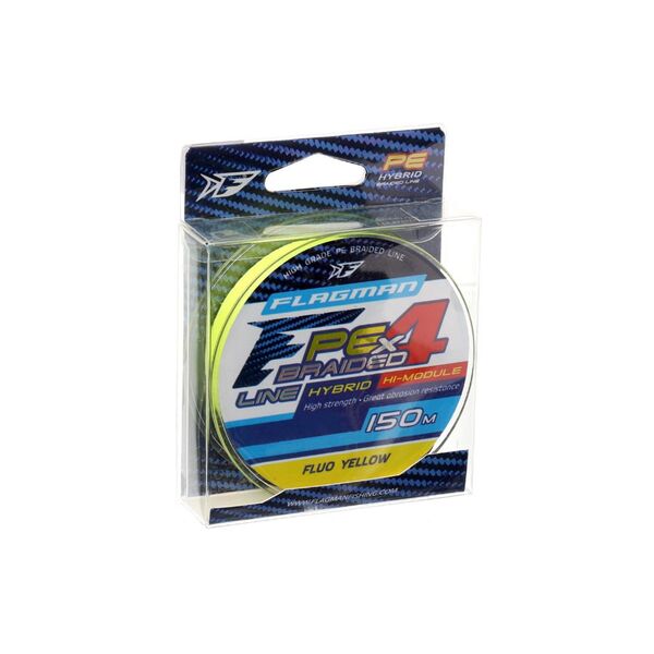 Плетенный шнур FLAGMAN PE X4 Hybrid Feeder Fluo Yellow - гибридный шнур, изготовленный по технологии четырехжильного плетения: две жилы из высокомолекулярного полиэтилена, две - из полиэстера. Полиэстер придает шнуру более высокую абразивную устойчивость по сравнению со шнурами, произведенными только из полиэтилена. Flagman PE Hybrid имеет очень плотную структуру плетения. За счет этого абразивные частицы, взвешенные в воде, не попадают между волокон и не изнашивают кольца. Кроме того, плотно сплетенный шнур меньше пропитывается водой и меньше обмерзает в холодное время года.