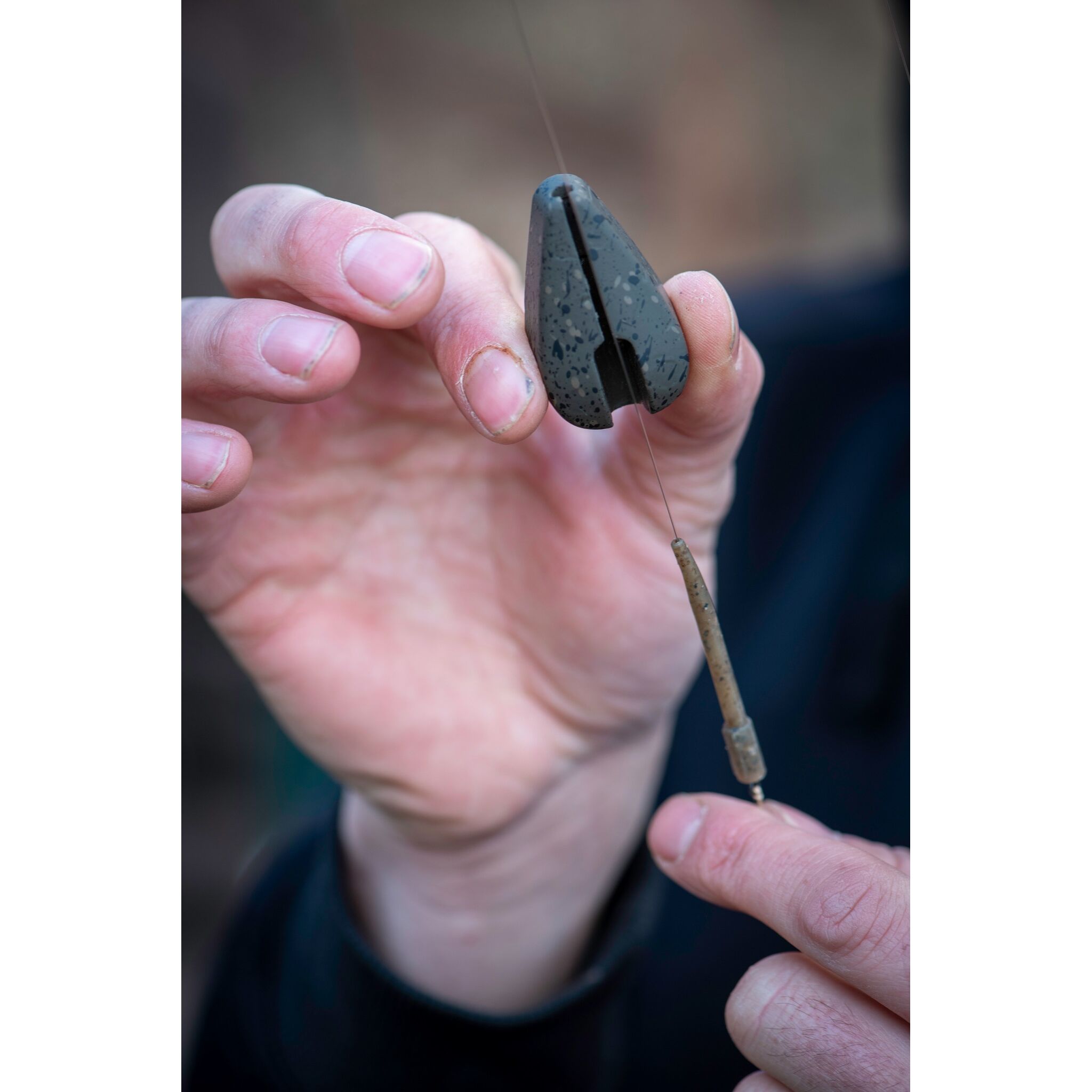 - Поводок выходит из грузила прямиком по центру для того, чтобы рыба мгновенно почувствовала полный вес грузила при выпрямлении поводка