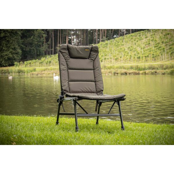 Комфортное кресло без подлокотников с системой фиксации откидной спинки в нескольких положениях, которая регулируется при помощи удобного для захвата руками колесика. Благодаря этой системе спинка стула может регулироваться в диапазоне 180 градусов. Стул имеет мягкий набитый матрас из материала 600Д с полиуретановой подкладкой, а также обладает нашей уникальной системой крепления для поясничной поддержки, при которой сам матрас встроен в каркас стула.