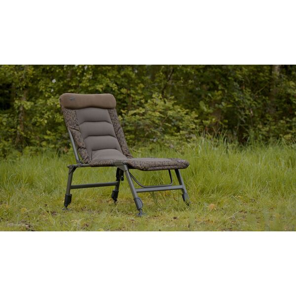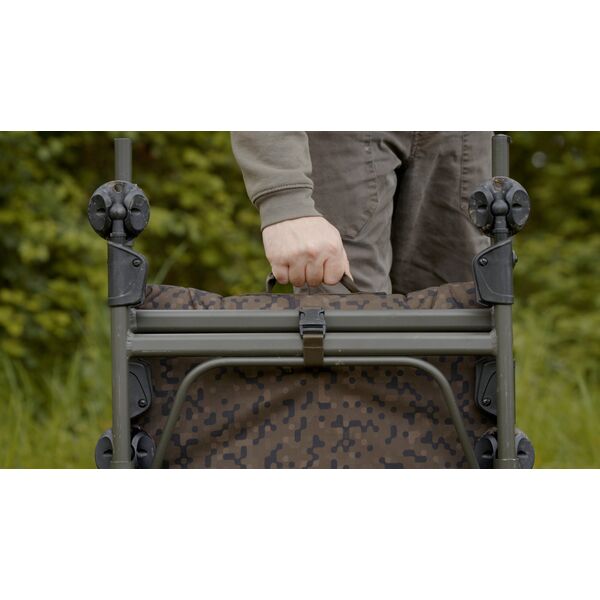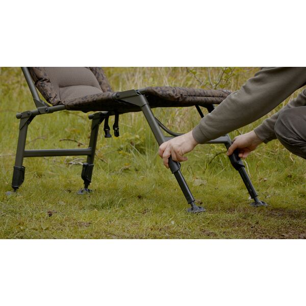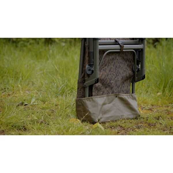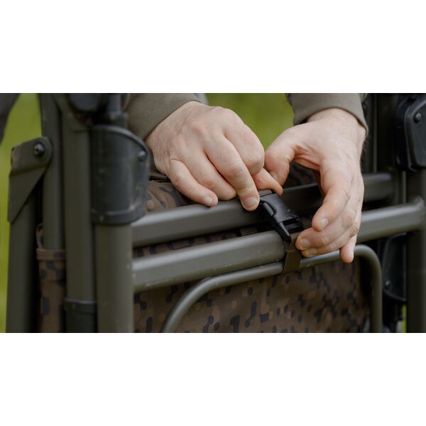 Фиксаторы «Leg-Loc» удерживают ножки и спинку кресла в нужном положении после установки, что исключает вероятность того, что кресло неожиданно сложится под Вашим весом в процессе эксплуатации. Компактный плетеный ремень и застежка под самим креслом надежно удерживают ножки в сложенном положении, в то время как аккуратная ручка для переноски на спинке кресла явно свидетельствует о нашем внимании к мельчайшим деталям в процессе разработки этого кресла. Кресло имеет наш новый камуфляжный рисунок «SolarCam» и поставляется с водонепроницаемой «накидкой».