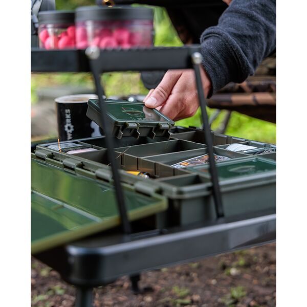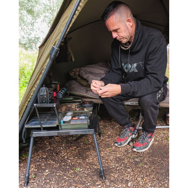 Монтажный столик двухъярусный FOX 2 Tier Bivvy Table - двухъярусный монтажный столик для еще более эффективной организации рабочего пространства. Вмещает еще больше личных вещей и необходимых снастей.