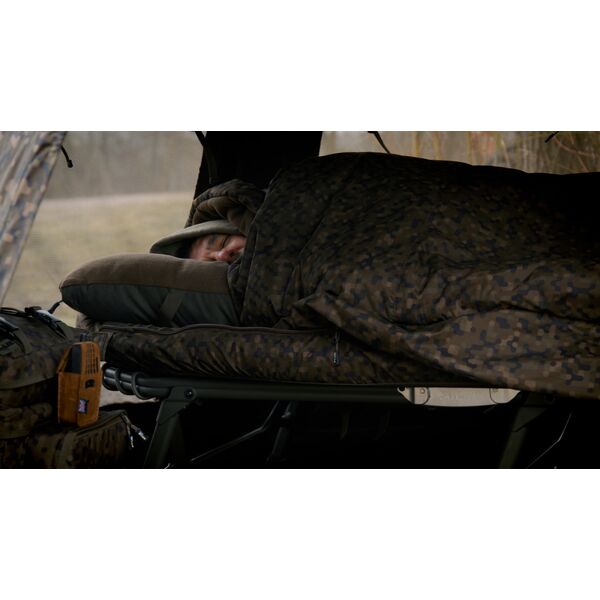 Спальная система отделана нашим привлекательным пиксельным камуфляжным узором «SolarCam». У этой спальной системы есть лишь одна проблема – хватит ли Вам воли заставить себя встать с нее, когда Вы услышите знакомый звук сигнализатора?