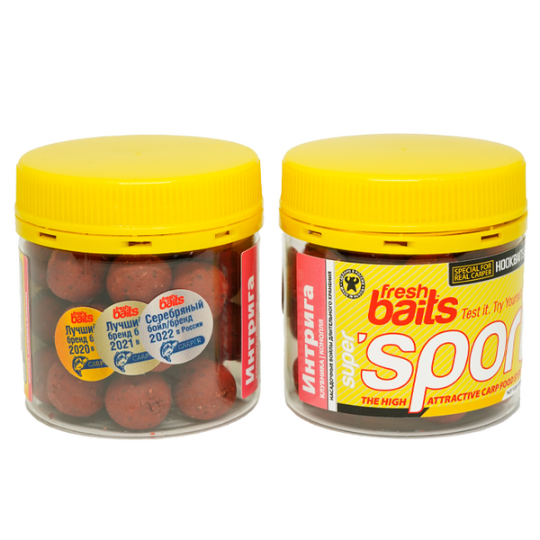 Бойла насадочные Fresh Baits Sport Интрига (Клубника и Конопля) 15 мм 100 гр