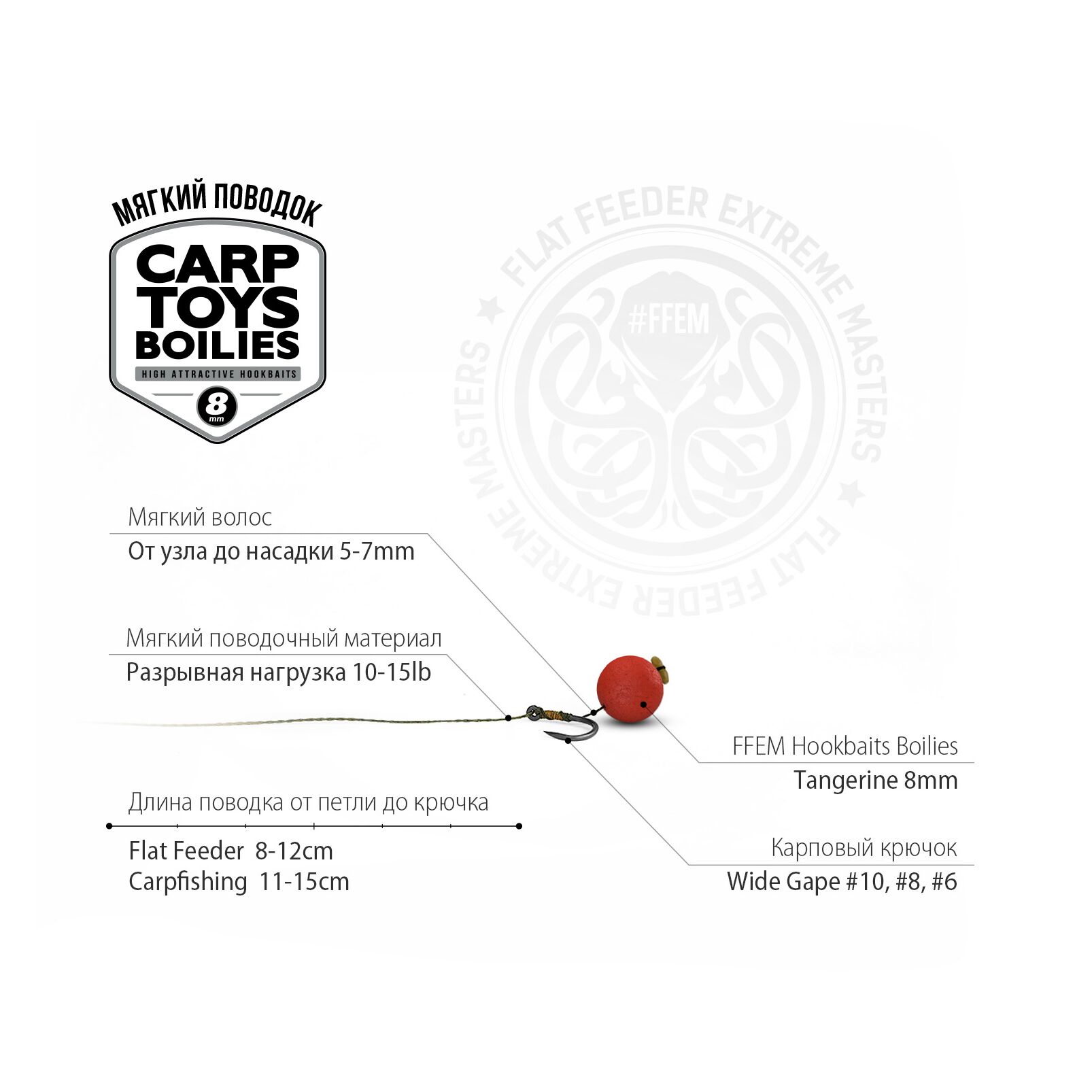 Бойлы насадочные FFEM Baits Hookbaits Boilies Tangerine (Мандарин) 8мм - миниатюрные насадочные бойлы спортивной серии с ароматом мандарина, обладающие высокой степенью привлекательности!