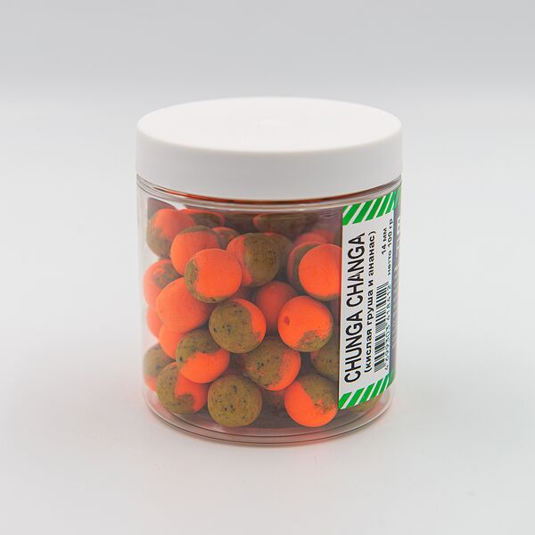 Rhino Baits Balanced Chunga Changa (Кислая Груша и Ананас), донный облегченный бойл ,нейтральной плавучести, являются специальным видом насадочных бойлов, которые в последние годы набирают все большую популярность у рыболовов, потому, что показывают очень хорошие результаты при ловле карпа, особенно при ловле на мягком дне, иле и при ловле в периоды слабой активности рыбы, в холодной воде — ранней весной или поздней осенью. Нейтральная плавучесть бойла, существенно облегчает его, и тем самым способствует быстрому и легкому всасыванию вашей насадки рыбой. Эти бойлы, также, успешно применяют и при ловле летом, в тёплой воде, и особенно, в условиях жёсткого рыболовного прессинга, на водоёмах с большим количеством рыболовов и на рыболовных соревнованиях, когда рыба особенно осторожно берёт вашу насадку. Использование нескольких цветов в бойлах нейтральной плавучести вделает их более заметными в различных условиях ловли, запахи и вкусы бойлов являются составными и включают в себя специально собранные миксы ароматизаторов и вкусовых добавок. Бойлы используются в качестве приманки и насадки. Насаживаются бойлы путем протягивания волоса поводка через центр бойла, с помощью рыболовной иглы и установкой фиксирующего стопора.