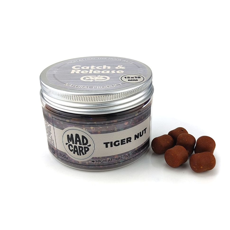 Дамбелсы насадочные Mad Carp Dumbels Tiger Nut 15х18мм 200гр - это эффективная приманка для ловли карпа, которая несомненно вызовет интерес у рыбы. Данные бойлы обладают повышенной привлекательностью, которая достигается благодаря яркой ароматике, повышенным аттрактивным качествам, большему количеству подсластителей и вкусовых добавок. Все это делает насадочные бойлы заметными даже на прикормочном пятне.