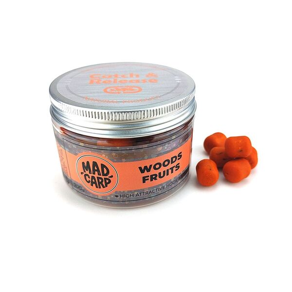 Дамбелсы насадочные Mad Carp Dumbels Woods Fruits 15х18мм 200гр - это эффективная приманка от компании Mad Carp для ловли карпа, которая несомненно вызовет интерес у рыбы. Данные бойлы от Mad Carp обладают повышенной привлекательностью, которая достигается благодаря яркой ароматике, повышенным аттрактивным качествам, большему количеству подсластителей и вкусовых добавок. Все это делает насадочные бойлы Woods Fruits от Mad Carp заметными даже на прикормочном пятне.