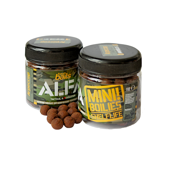Fresh Baits ALFA Агрессор - бойлы новой концепции ALFA от бренда Fresh Baits в буквальном смысле произвели фурор на водоёмах России. Они сломали все стереотипы о применении насадок. Описание состава бойлов на сегодняшний день держится в секрете, можно сказать лишь одно: "Альфа настолько самодостаточна, что не требует никакой "поддержки" в прикормочной программе и ловит в разы лучше подавляющего большинства насадок вообще.
