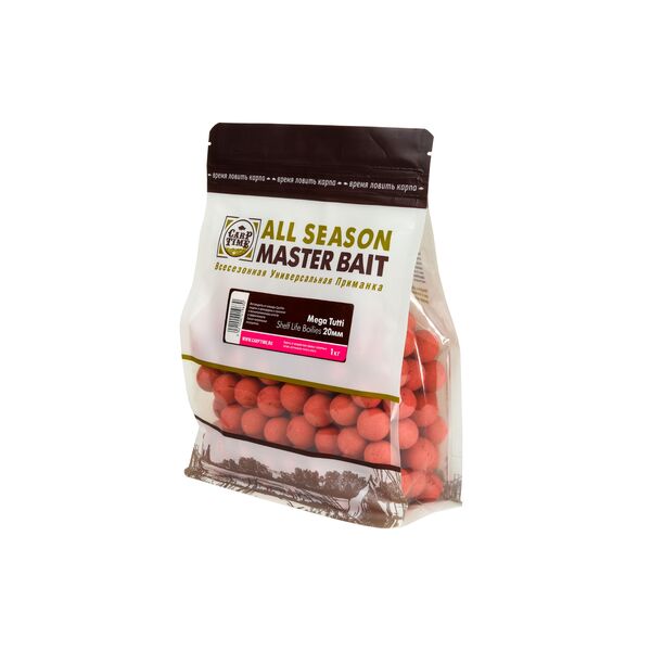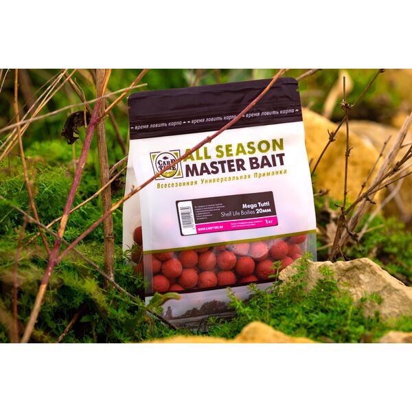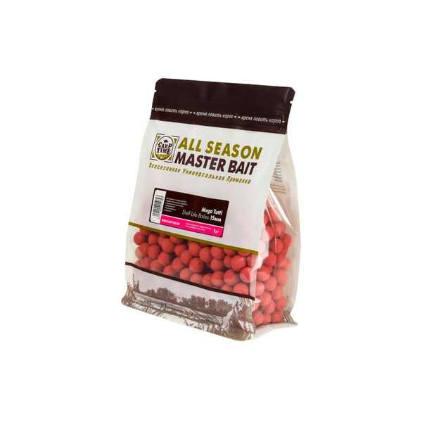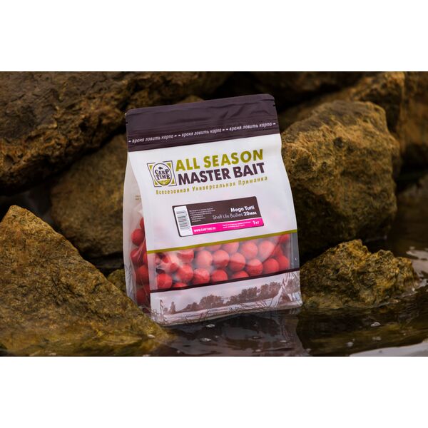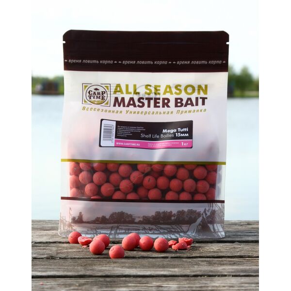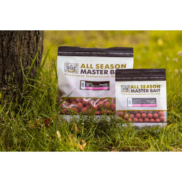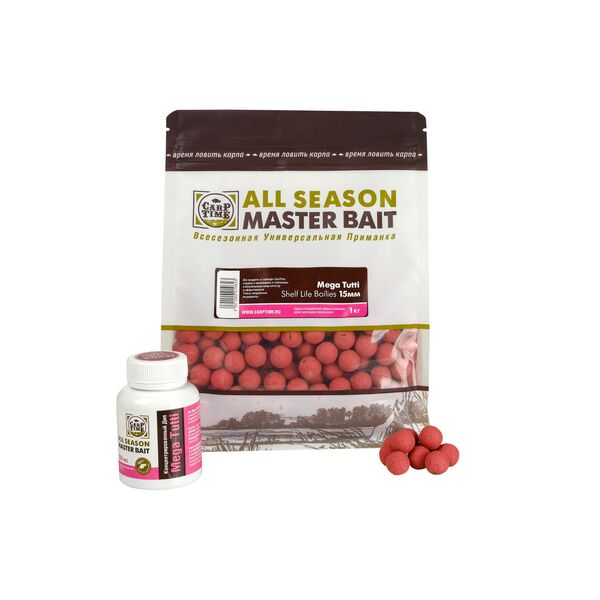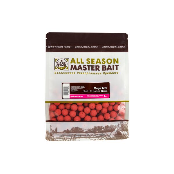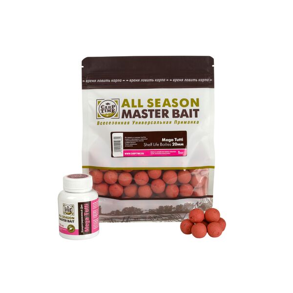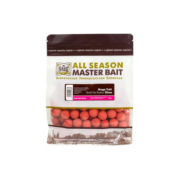 Бойлы варенные CarpTime MASTER BAIT Mega Tutti (Мега Тутти) - рецепты линейки бойлов Carp Time Master Bait были задуманы и воплощены в виде всесезонных универсальных приманок и, тем не менее, особенности и нюансы практического применения даже внутри этой линейки, безусловно, есть. Они были подтверждены тестированием команды филд-тестеров из разных концов нашей страны в течение полного сезона 2022, а также многолетним использованием аналогичных донорских продуктов.
