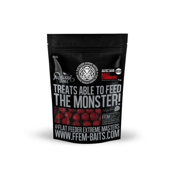 Бойлы варенные FFEM Baits "Русский Бойл" Strawberry 1кг 23мм - эффективные бойлы быстрого действия RE (Rapid Effect). Быстро усваиваемый микс включает в себя 28% белков различного происхождения. Также в состав входит комплекс аминокислот, Bird Food (набор различных зерен), сладкие специи, различные вкусовые добавки, являющиеся пищевыми триггерами, декоративная выпечка, эфирные масла и фруктовые ароматизаторы. Бойлы FFEM Strawberry разработаны для ловли рыбы в любое время года и отлично себя зарекомендовали в условиях, когда необходимо создать в месте ловли быстрый пищевой и ароматический сигналы. Оптимальный диаметр для кормления коброй.