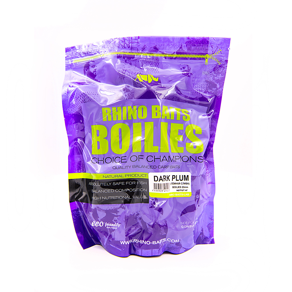 Бойлы варенные Rhino Baits Dark Plum (Темная Слива) 1 кг – несомненно, это фирменное блюдо от лаборатории Rhino Baits, наряду с серией бойлов Kraken и Monster Crab, которое было разработано ещё в самом начале деятельности RB Lab. Без этих бойлов, многие карпятники не поедут на рыбалку. В идеале, по мнению многих спортсменов-рыболовов, их прикормочная программа на ловлю должна обязательно содержать бойлы Dark Plum, причем как варёные, так и растворимые. Учитывая, что многие рыболовы не ездят на рыбалку или соревнования только с одним вкусом карпового питания, то эта серия бойлов от Rhino Baits идеально сочетается в прикормочных миксах с бойлами Kraken, и именно эту комбинацию карповых вкусов больше всего предпочитают спортсмены-карпятники. Плотный, устойчивый запах Dark Plum, отлично привлекает и удерживает рыбу в точке ловли, а темно-красный цвет не выделяет ваше питание слишком резко на фоне цвета дна.