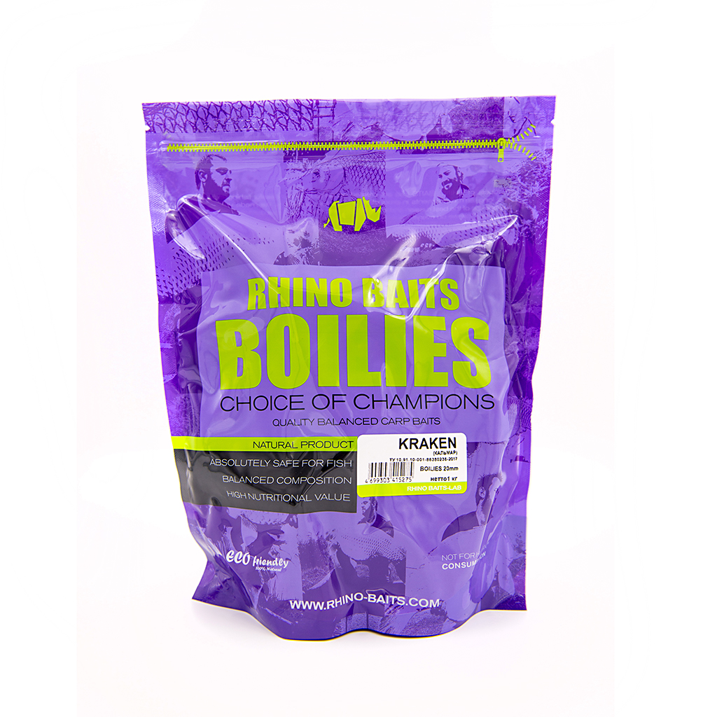 Главная/Карпфишинг/Карповое питание/Бойлы/Бойлы варенные/Бойлы варенные Rhino Baits Kraken (Кальмар и Фрукты) 20 мм 1 кг