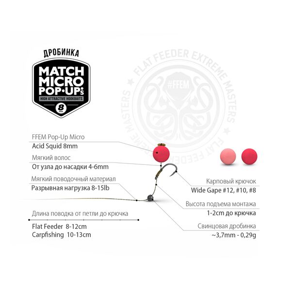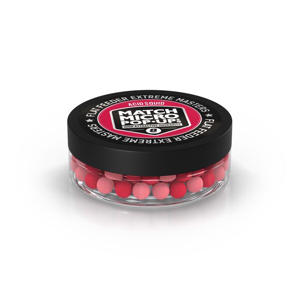 FFEM Baits Pop-Up Micro Acid Squid - супер аттрактивные плавающие насадочные бойлы с многокомпонентной комбинацией ароматов кальмара и клюквы, с добавлением эфирного масла черного перца и масляной кислоты. Увесистые карпы и амуры, пойманные на Acid Squid, будут пищать от удовольствия, позируя для фото!