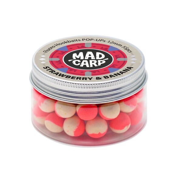 Плавающие бойлы Mad Carp Strawberry & Banana 12мм - это притягательные, ароматные и яркие плавающие насадки, идеально подходящие для ловли рыб карповых пород.