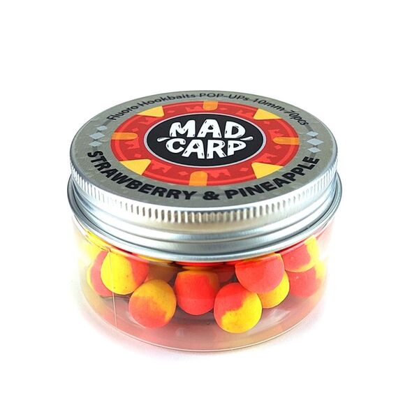 Плавающие бойлы Mad Carp Strawberry & Pineapple - это притягательные, ароматные и яркие плавающие насадки, идеально подходящие для ловли рыб карповых пород.