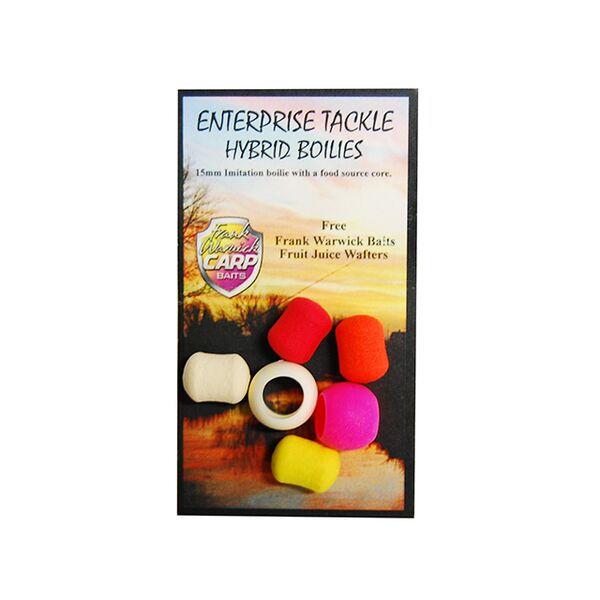 Гибридные бойлы Enterprise Tackle Hybrid Boilies Mixed Fluoro & White 15mm - Имитационные бойлы диаметром 15мм с питательным сердечником, включающие бесплатные вафтерсы (бойлы нейтральной плавучести) Френка Ворвика «Fruit Juice» («Фруктовый Сок»).