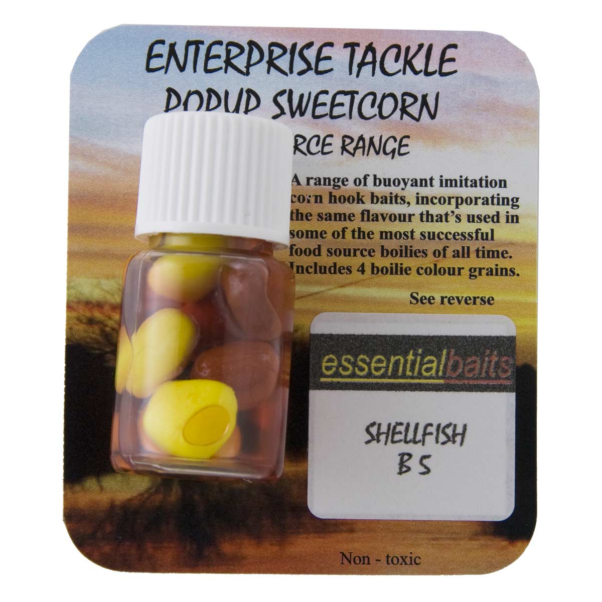 Enterprise Tackle Pop-Up Sweetcorn EssentialBaits Shellfish B5 - данный вид плавающей кукурузы задипован в аромате от компании Essential Baits Shellfish B5 (Морепродукты). Плавающая кукуруза от Enterprise Tackle имеет желтый и бурый (B5) цвет. В упаковке 8 штук.
