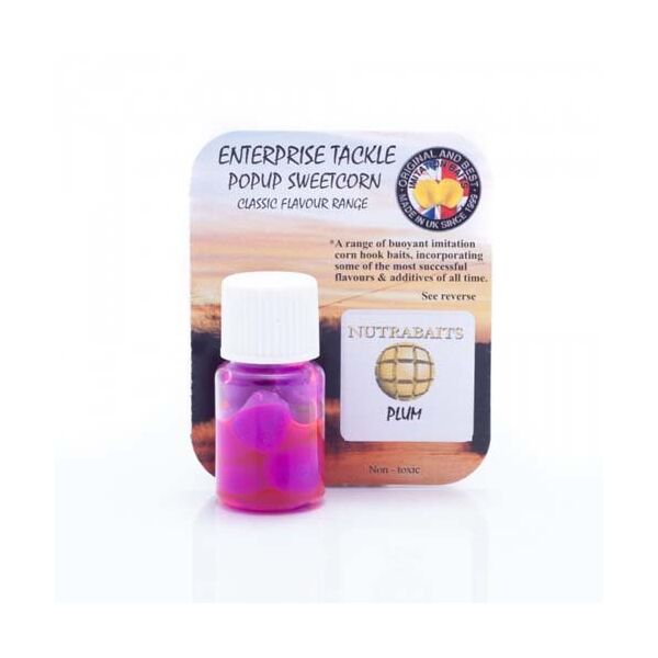 Enterprise Tackle Pop-Up Sweetcorn Nutrabaits Plum - данный вид плавающей кукурузы задипован в аромате от компании Nutrabaits Plum (Слива). Плавающая кукуруза от Enterprise Tackle имеет фиолетовый цвет. В упаковке 8 штук.