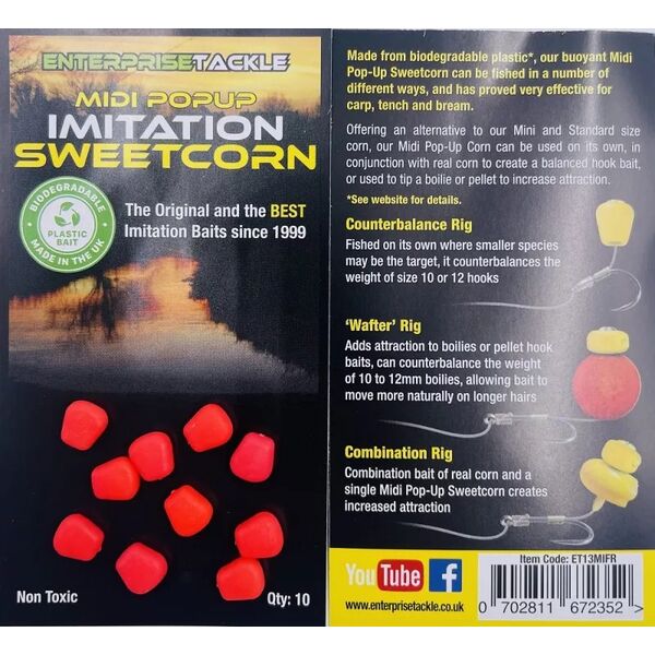 Искусственная плавающая кукуруза Enterprise Tackle Pop-Up Imitation Sweetcorn Fluoro Red - Эта насадка, которую часто пытались скопировать, но которую еще никому не удалось улучшить, записала на свой счет поимку тысяч трофейных карпов, а также крупных линей, лещей, карасей и плотвы. Искусственная кукуруза, насыщенная нашими специальными аттрактантами, обладает достаточной мягкостью для насаживания за бок, но лучше всего проявляет себя при использовании на волосяном монтаже – как в одиночку, так и в сочетании с натуральными зернами кукурузы. Воспользуйтесь плавучестью кукурузы как Вашим преимуществом для создания приподнятых или критически сбалансированных насадок. Для балансировки монтажа Вы можете воспользоваться маленькой свинцовой дробинкой.