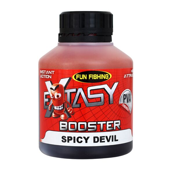 Бустер Fun Fishing Extasy Spicy Devil (Пряный Дьявол) 250мл - бустер от компании Fun Fishing с ароматом мяса и острых специй, который состоит из высокой доли растворимых аттрактантов, очень богатых аминокислотами, которые быстро распространяют пищевой сигнал при попадании в воду. Французский тяжеловес карпового питания Fun Fishing обнародовал обновление топовой линейки питания Ecstasy. Причём изменились не только рецепты, также компания представила обновлённый дизайн упаковок и немного изменила концепцию своего главного детища.