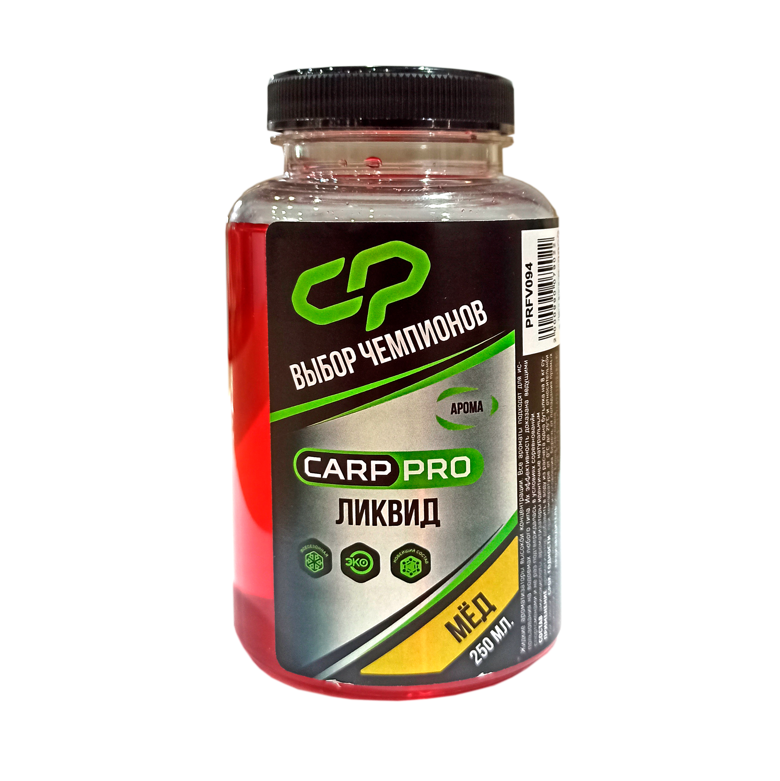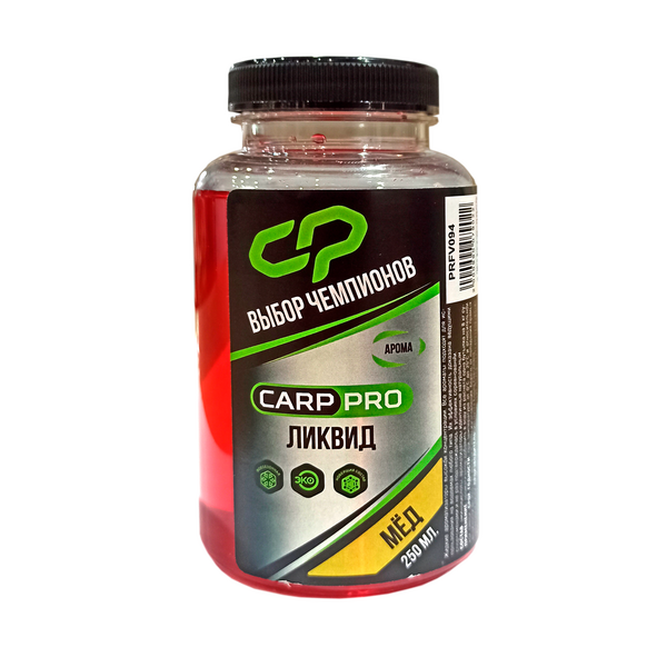Ликвид Carp Pro Мёд 250 мл – жидкая добавка в прикормочную смесь с ароматом меда. Использовать можно как добавку или замешивать в прикормку, предварительно разведя ликвид в воде.