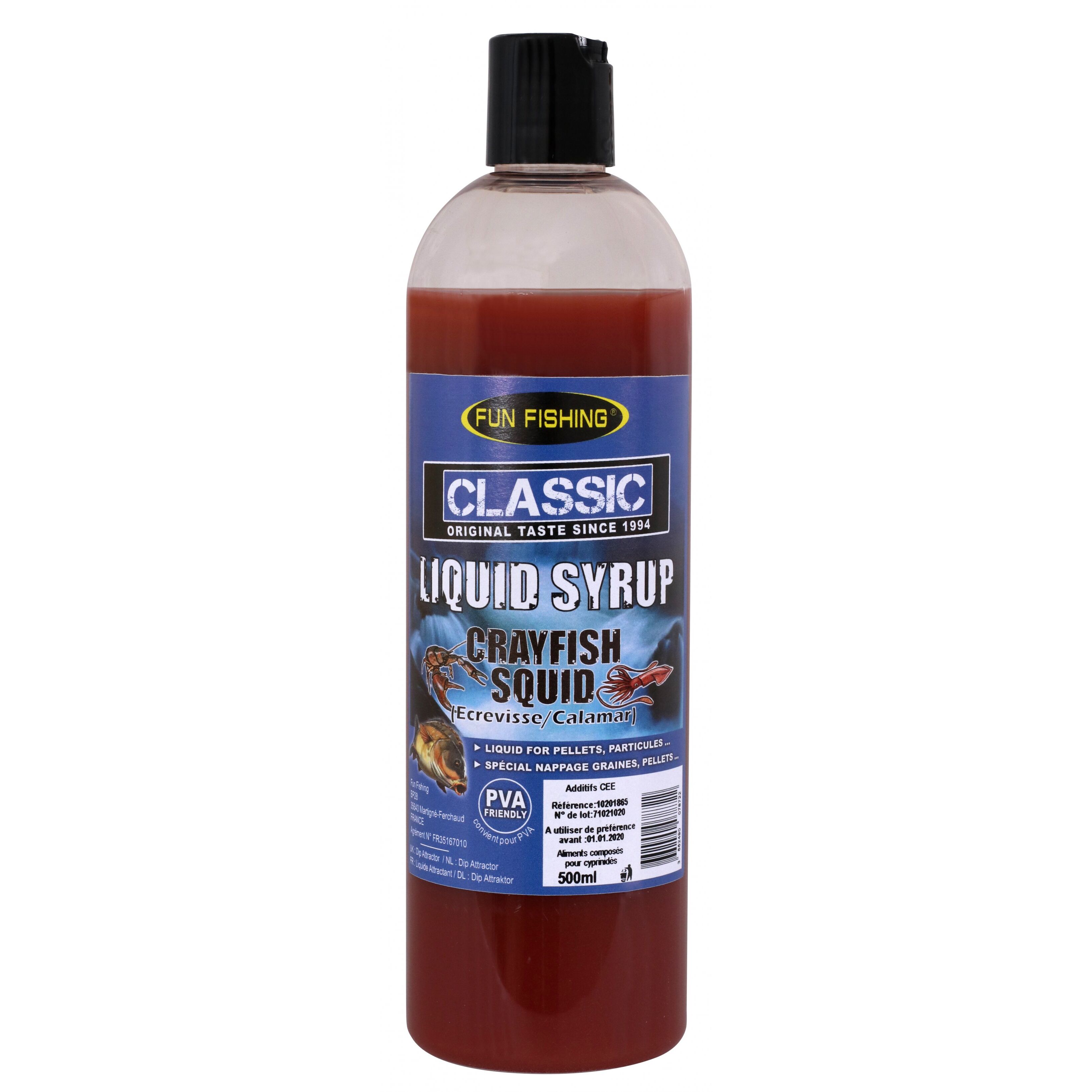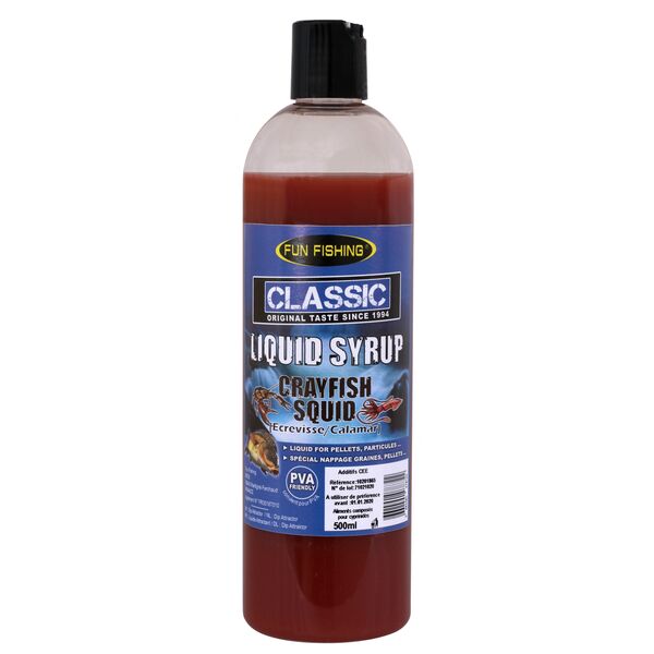 Высокоароматизирующий сироп Fun Fishing Classic Crayfish & Squid (Рак и Кальмар) 480мл – это специально созданная гамма высоко привлекательных бустеров для замачивания прикормки или смесей для изготовления ПВА-стиков и заполнения ПВА-мешков.
