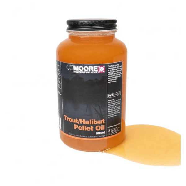 Масло CCMoore Trout/Halibut Pellet Oil 500ml (Масло Форели и Палтуса) - Микс из форелевого масла и масла палтуса. Используемое в качестве мощного аттрактанта, а также как концентрированный источник энергии, это масло - тот же продукт, который используется в производстве подавляющего большинства форелевого и палтусового пеллетса, который так любит карп.