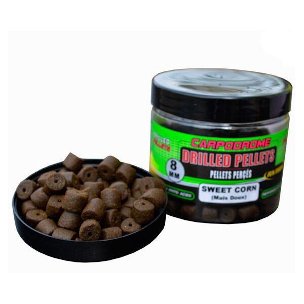 Drilled Pellets - пеллетс, в котором уже есть отверстие, чтобы его удобнее было использовать с волосяной оснасткой. Они лучше впитывают в себя жидкие аттрактанты, в которых они замачиваются и, что самое важное, они быстро рассеивают эти аттрактанты после попадания в воду. Можно ловить на единичные пеллетсы, а также на комбинацию разных ароматов, нанизанных на волос. Возможна прямая насадка пеллетса на крючок, а также использование в миксе или ПВА-пакете.