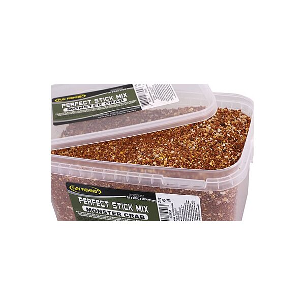 Идеальный стик-микс Fun Fishing Perfect Stick Mix Monster Crab (Монстр Краб) 2кг - эти «Идеальные Стик-миксы» (Perfect Stick Mix) от компании Fun Fishing изготовлены из различных сортов высоко привлекательной и хорошо усвояемой муки. Различный размер гранул, входящих в состав стик-миксов от Fun Fishing – мелкая пыль, средние и достаточно крупные частицы – обеспечивает максимально эффективную работу стик-микса. Благодаря наличию мелких компонентов микс начинает незамедлительно работать после попадания в водоем, а присутствие крупных частиц продлевает время эффективной работы микса.