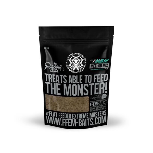 FFEM Baits Method Mix Amino Original – питательная HNV (High Nutritional Value) прикормка на основе рыбной муки. Предназначена для ловли на фидер и флэт-метод фидер. Также может использоваться в качестве компонента для приготовления спод-миксов, ПВА мешков и стиков. Прикормка мелкофракционная, натурального серо-коричневого цвета, имеет сладкий вкус и приятный аромат свежей рыбной муки.