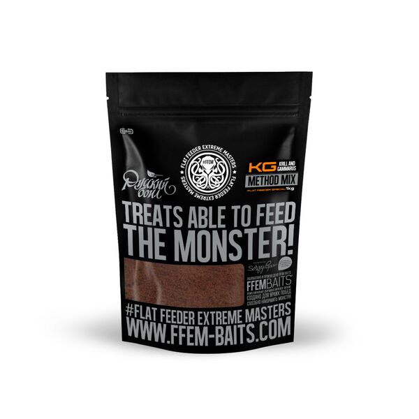 FFEM Baits Method Mix Krill and Gammarus – питательная HNV (High Nutritional Value) прикормка на основе муки криля и гаммаруса. Предназначена для ловли на фидер и флэт-метод фидер. Также может использоваться в качестве компонента для приготовления спод-миксов, ПВА мешков и стиков. Прикормка мелкофракционная, имеет сладкий вкус и выразительный крилевый аромат.