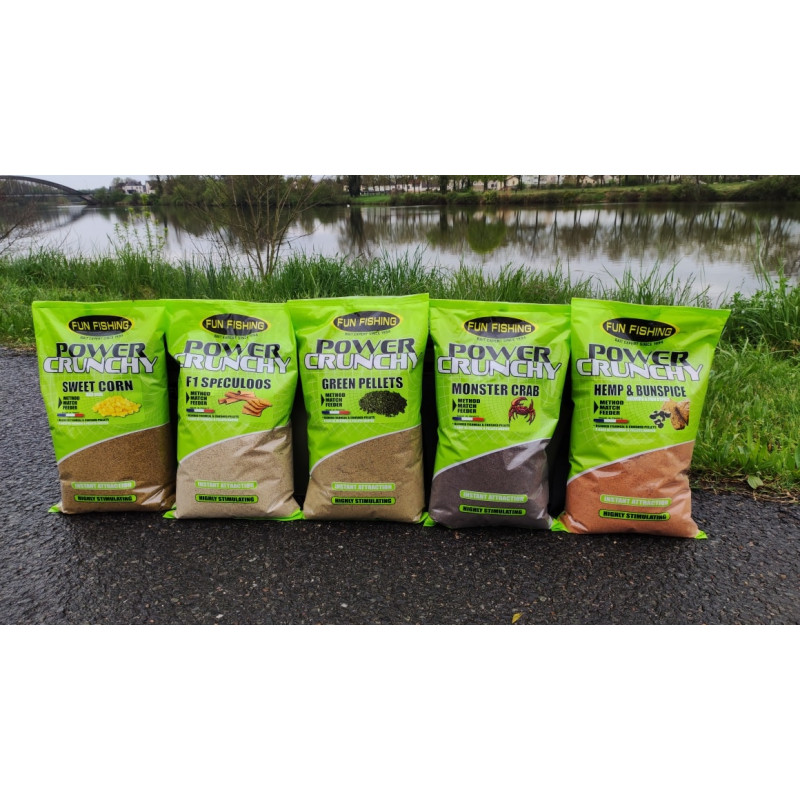 Серия прикормок «Power Crunchy» получила мощный заряд ароматики благодаря использованию таких легендарных запахов, как «Монстр Краб», «Сладкая Кукуруза» и «Конопля и Пряности».