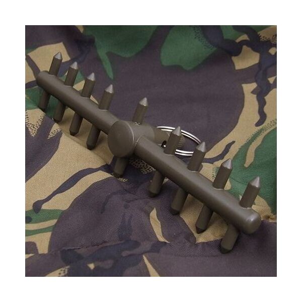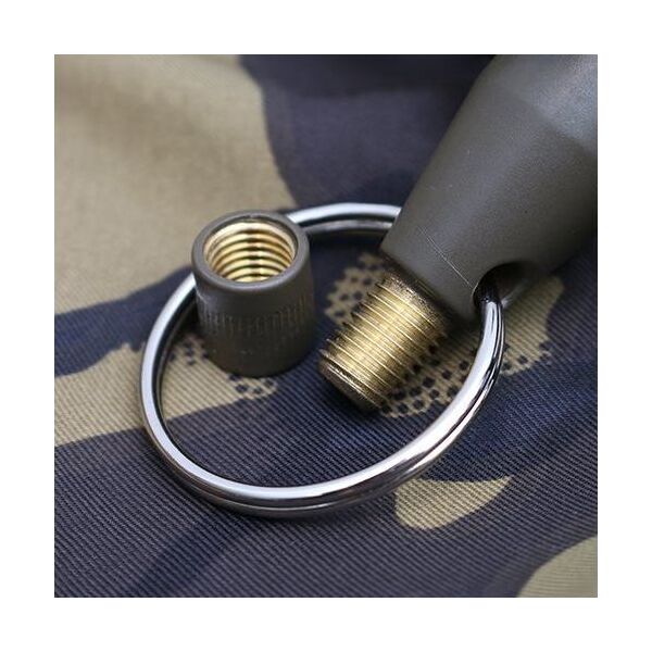 Дизайн этих грабель позволяет прикрепить их к прочной веревке/шнуру и забрасывать вручную, либо Вы можете прикрепить их к рукоятке подсачека, оснащенной резьбой 3/8 BSF.