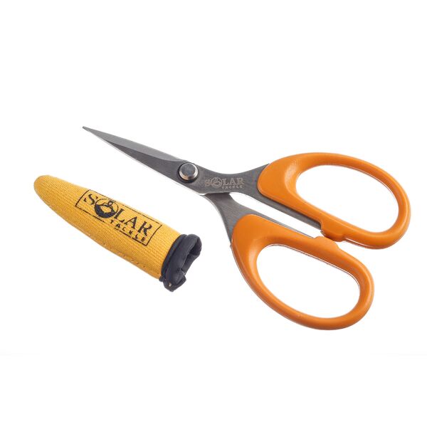 Solar Serrated Braid Scissors - По-настоящему острые ножницы с зубчатыми лезвиями, которые аккуратно перерезают любые плетеные, монофильные и флюрокарбоновые материалы. Ножницы обладают достаточным размером для того, чтобы справиться с самыми сложными заданиями и поместиться в самых крупных руках, при этом благодаря своему малому размеру без особых проблем поместятся внутри Вашей коробки со снастями. Эти ножницы также характеризуются выгравированным лазером логотипом Solar на лезвии. Яркая оранжевая рукоятка упрощает поиск ножниц в коробке или палатке. Ножницы настолько остры, что в комплекте прилагается защитный неопреновый футляр.