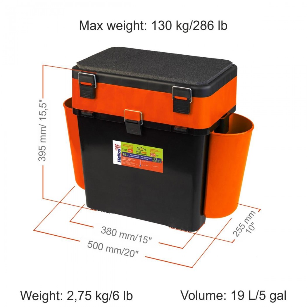 Ящик для зимней рыбалки Helios Fish Box с навесными карманами 19л (Оранжевый) - изготовлен из ударопрочного и морозостойкого пластика способного выдерживать высокий отрицательный температурный режим. Серия FishBox была специально разработана для максимально комфортных условий при эксплуатации. Конструкция ящика обеспечивает самые важные параметры, такие как: хорошая устойчивость, лёгкость и удобство при переноске.