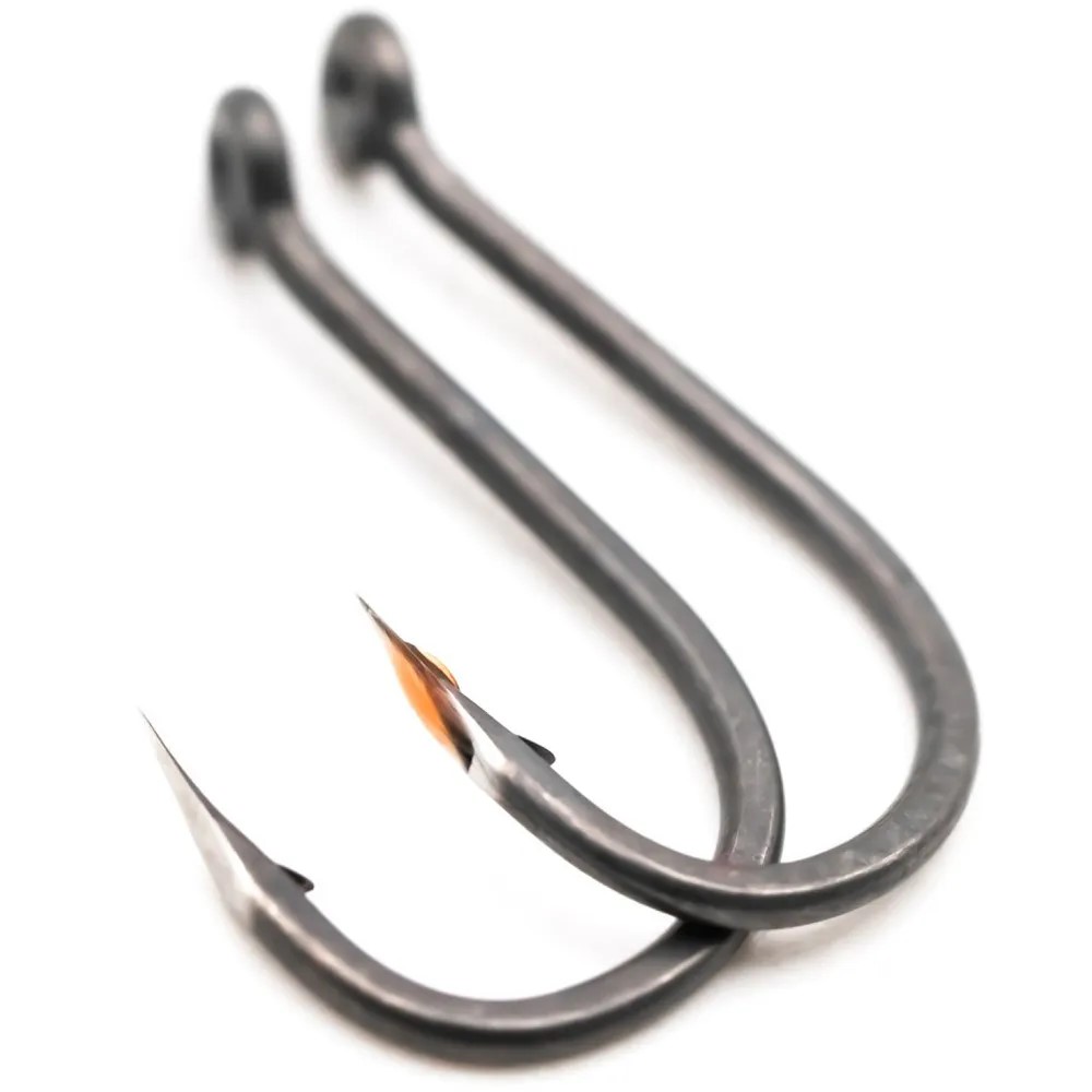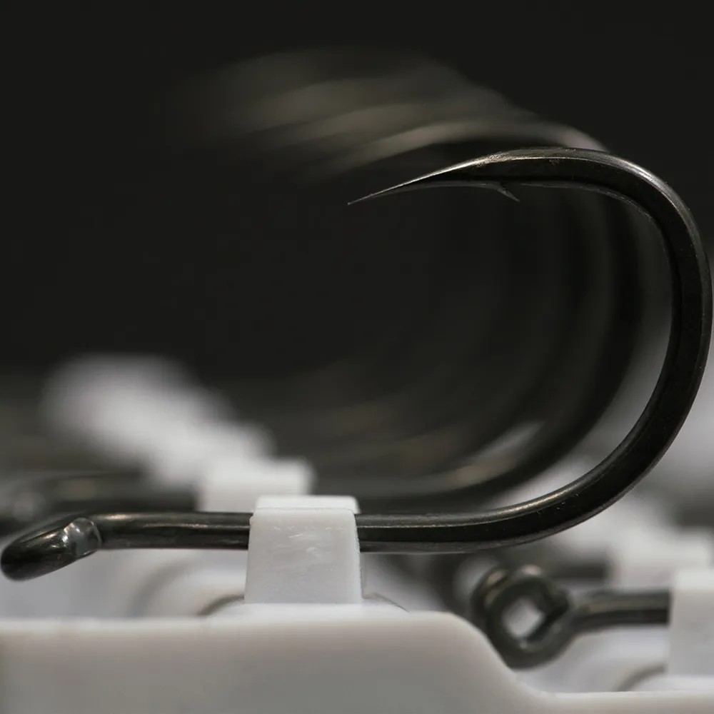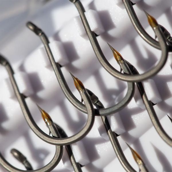 Агрессивный изгиб цевья выбран не с проста. Благодаря ему крючок занимает необходимое положение в воде и гораздо лучше удерживается во рту рыбы во время вываживания. Жало отогнуто в бок и снабжено микро бородкой, достаточно надежной, но при этом легко извлекаемой из рыбы.