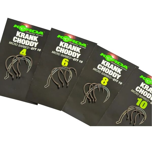 Крючки Korda Krank Choddy - крючок с микробородкой, который является усовершенствованной версией сверхпопулярного Korda Krank, который адаптировали под оснастку Chod Rig. Как и свой предшественник, он отличается особой геометрией, которая заставляет крючок занимать выгодное положение на дне, а так же надежно удерживать рыбу до момента попадание ее в садок. Этот крючок - одно из последних творений инженеров из компании Korda.