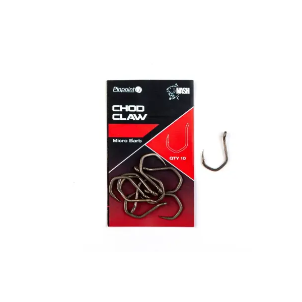 NASH Pinpoint Chod Claw - Один из самых известных крючков на рынке, Pinpoint Claw теперь доступен с загнутым наружу ушком, отлично подходящим для оснасток с плавающими насадками. Крючок имеет широкий поддев и большое ушко, что позволяет использовать жесткие моно материалы. Его отличительная форма позволяет создавать самые агрессивные и надежные поводки.