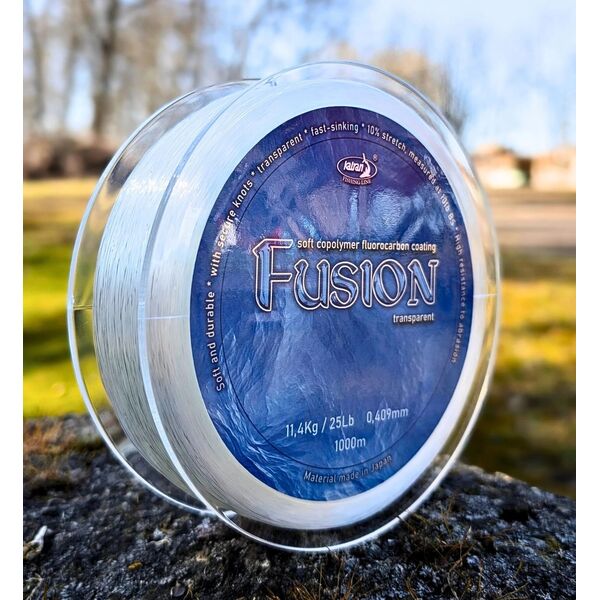 Леска с флюрокарбоновым покрытием Katran Fusion Fluorocarbon Сoated 1000м - изготовленную из прочного сополимерного монофиламентного сердечника и экструдированного фторуглеродного покрытия. Эта 100% кристально чистая, прозрачная леска обеспечивает идеальный баланс для дальнего заброса, долговечности и прочности узлов. Обладая минимальной растяжимостью до 10%, она обеспечивает превосходный контроль при вываживании карпа. Дополнительный слой фторуглерода не только увеличивает скорость погружения лески, но и обеспечивает исключительную водостойкость, повышая её устойчивость к истиранию.